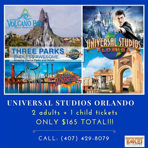 Shop from a selection of: Per adult ticket + tax. Apply this promo code at checkout. 10% off your vacation package. Universal orlando resort take your vacation to the next level with universal studios florida, universal's islands of adventure, universal's volcano bay water theme park and more!
